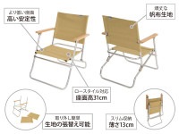 イギリス軍がランドローバーの車載装備として使用していたローバーチェア。 素材や構造はローバーチェアのまま、高さを低くしました。近年キャンプの主流となりつつあるロースタイルキャンプに対応します。 また、簡単に生地を取り外せる構造になっているため、生地の張り替えなどのカスタムもしやすくなっています。