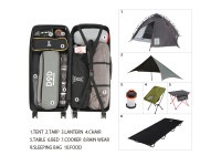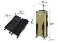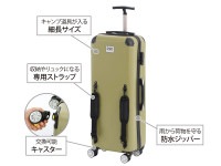 「スーツケースでキャンプ」という気楽で全く新しいキャンプスタイルを提案するアイテムです。 キャンプ=「車が必須」というイメージがありますが、車がなくても電車やバスで行けるキャンプ場はたくさんあります。そして、ほとんどは車の乗り入れを前提としたオートキャンプ場なので、入り口までは舗装されていることが多く、入り口まではスーツケースで行くことができます。 スーツケースでキャンプをすれば、重たいバックパックと違い移動はラクチン、車と違い撤収日にお酒を飲むこともできます。キャンプがより自由で気楽になる、キャンパーのためのスーツケースです。