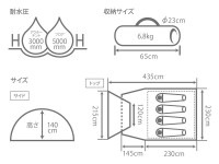 2人でのツーリングやゆったりとテントを使いたいあなたへ。 広い寝室を持ちながらパッキングサイズをコンパクトに抑えたワンタッチテントです。 広い前室を搭載しているので、ツーリングでの荷物置きやリビングスペースとして活用することができ、別途タープを張らなくてもキャンプを楽しむことが可能です。