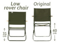 イギリス軍がランドローバーの車載装備として使用していたローバーチェア。 素材や構造はローバーチェアのまま、高さを低くしました。近年キャンプの主流となりつつあるロースタイルキャンプに対応します。 また、簡単に生地を取り外せる構造になっているため、生地の張り替えなどのカスタムもしやすくなっています。