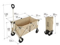 使わない時は折りたたんでコンパクトに収納ができる、大容量のキャリーワゴンです。 張り切って車に詰め込んだ大量のキャンプ道具。 キャンプ場の駐車場に到着し、キャンプサイトまでの荷物の運搬に絶望したことはありませんか。 大型タイヤが搭載されたキャリーワゴンを使えば、キャンプサイトまで荷物をまとめて簡単に運ぶことが可能です。 キャリーワゴンを使ってキャンプ道具の運搬・搬入をスムーズに行えば、時間と労力を節約できキャンプがもっと充実します。